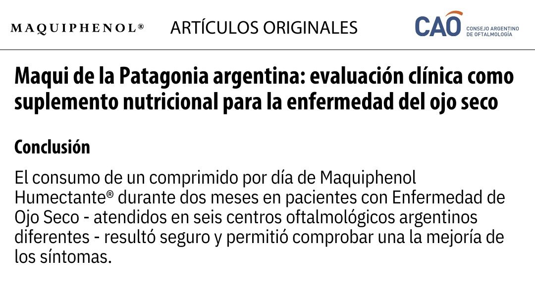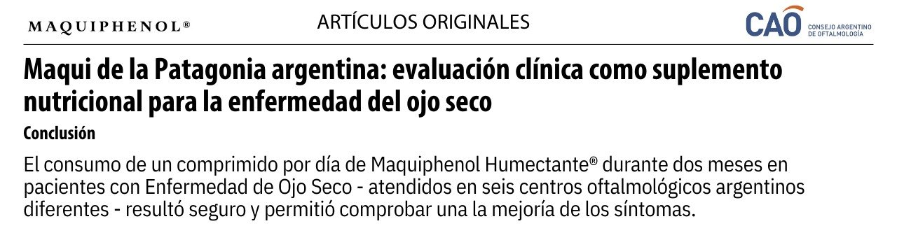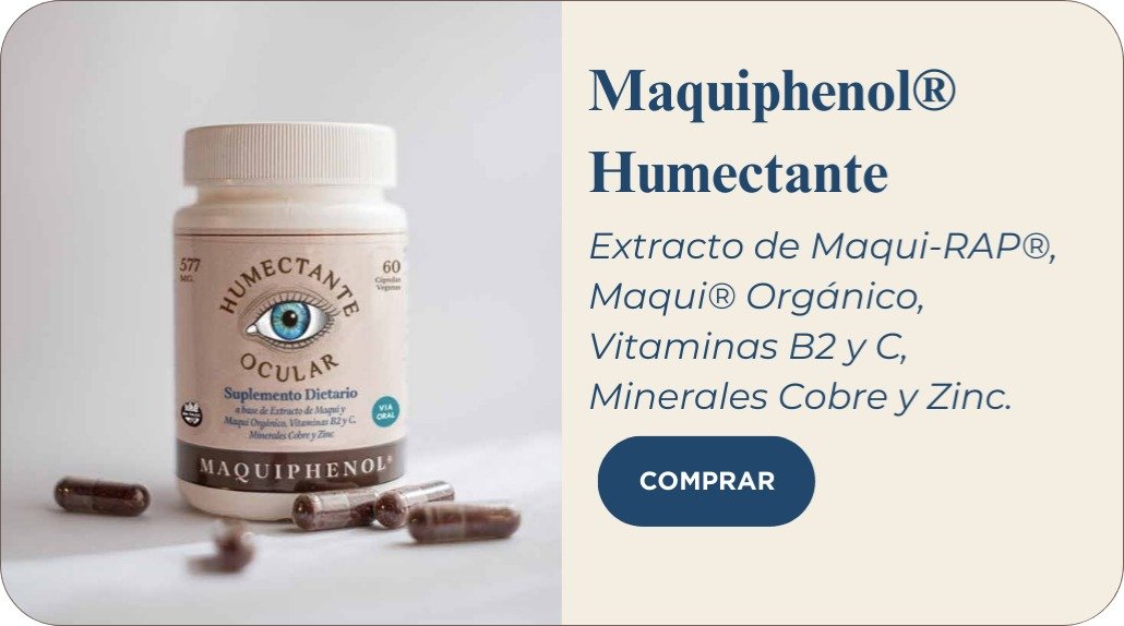 Suplemento natural con extracto de Maqui-RAP®, de gran poder antioxidante y antiinflamatorio. Estudio clínico: 90,9% de eficacia en ojo seco. Seguí nuestras redes y enterate de todas las novedades.